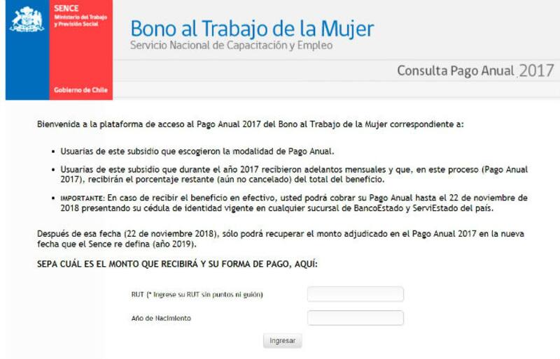 Este martes 28 de agosto se realiza el pago anual 2017 del Bono al Trabajo de la Mujer. Este beneficio corresponde al dinero acumulado según un cálculo a las rentas del año anterior.