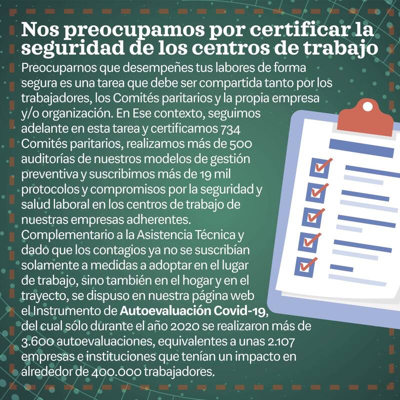 La próxima semana hay dos días especiales, el 28 de abril es el Día Mundial de la Seguridad y Salud en el Trabajo y el 1° de mayo es el Día del Trabajador, fechas que para nosotros y nuestros jefazos de la Mutual es considerada como la "Semana del Trabajador", jornada en donde además de reconocer su importancia y aporte al desarrollo del país, los homenajeamos. Por eso, más allá de frases bonitas y palabras de buena crianza, queremos contarles con hechos cuál ha sido el aporte de Mutual de Seguridad para que los trabajadores del país, estén protegidos y seguros desempeñando sus funciones, sin importar el rubro, la localidad, la actividad económica, sus ingresos y el tipo de contrato que tienen.