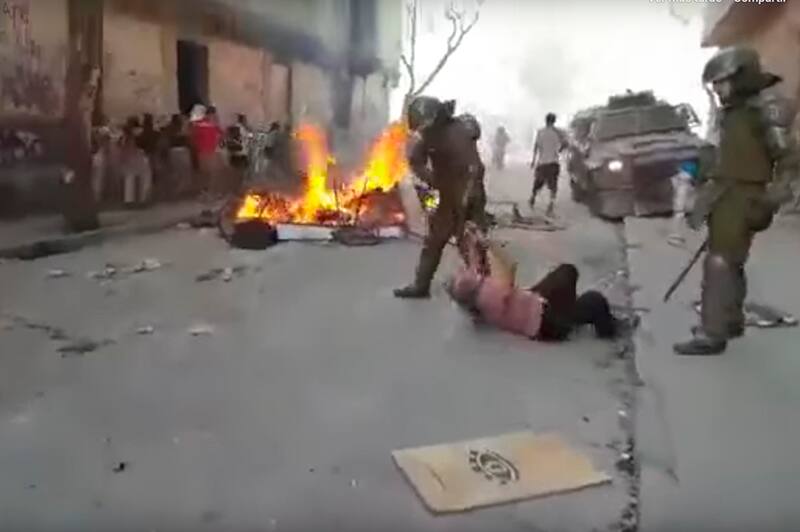 "La persona que protagoniza el video que se ha hecho viral, fue detenida por desórdenes graves y atacó a los carabineros que se encontraban en clara desventaja numérica. No obstante lo anterior, hemos dispuesto una investigación administrativa", señalaron desde el departamento de comunicaciones sociales de carabineros.