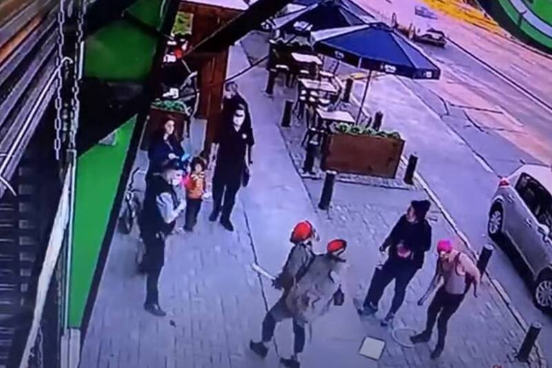 Tal como quedó registrado en cámaras de seguridad, el hecho se dio en plena vía pública e involucró a otros dos sujetos, quienes acompañaban al agresor.
