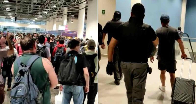 Su salida del aeropuerto fue grabada por testigos, quienes también aplaudieron su detención.