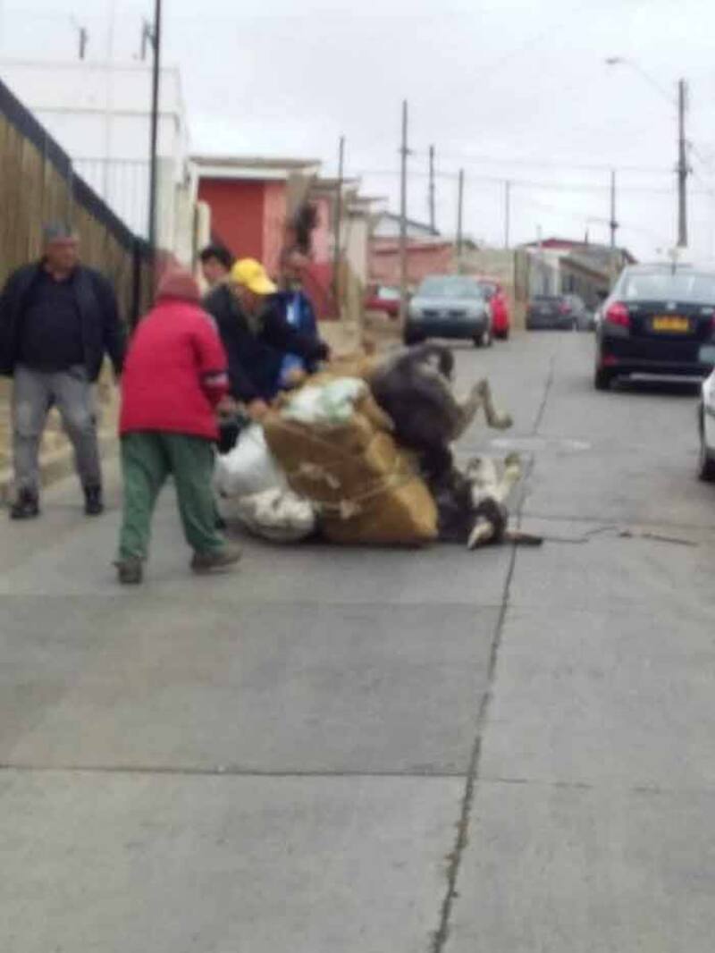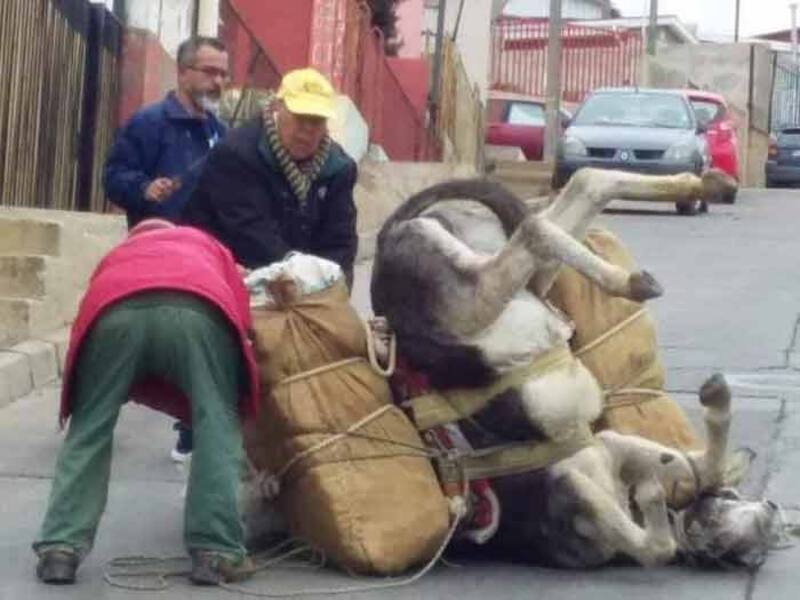 [Fotos] Indignación en Valparaíso: burro se desplomó por exceso de carga