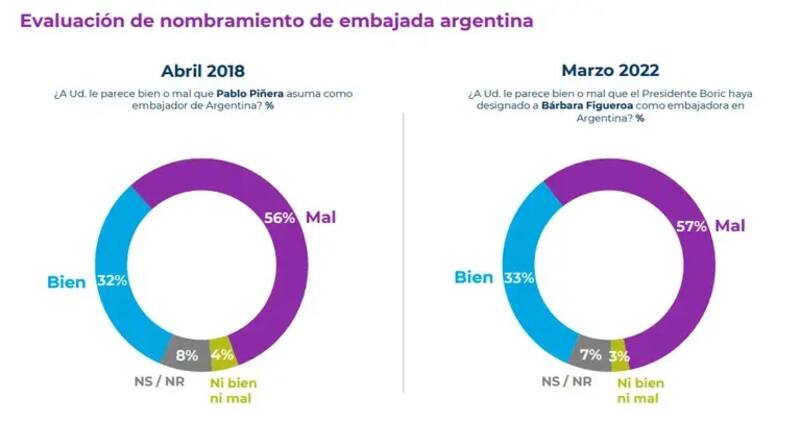 En otros temas, el sondeo arrojó que a un 57% de los encuestados les pareció mal el nombramiento de Bárbara Figueroa como embajadora en Argentina.