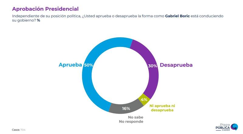 Aun así, su aprobación se mantiene estable. Tal como la semana anterior, el magallánico mantuvo un 50% según la encuesta Plaza Pública Cadem.