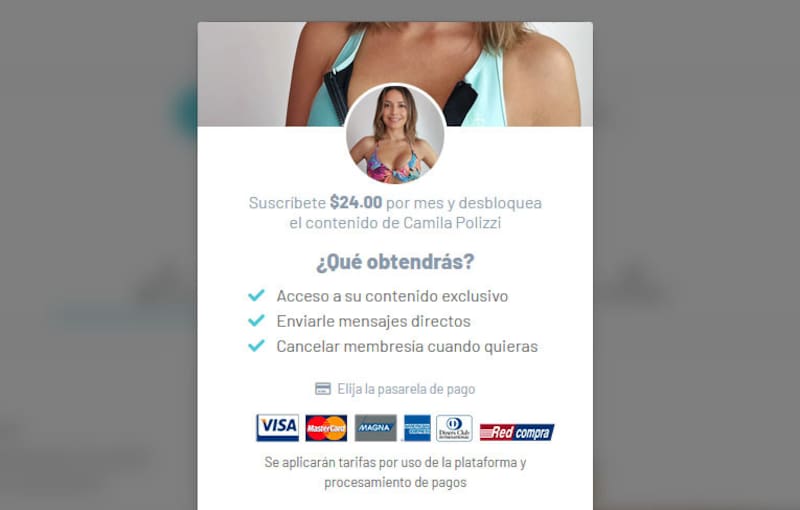“Suscríbete y desbloquea el contenido de Camila Polizzi”, reza el anuncio.