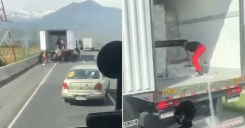 La tarde de este miércoles se viralizaron diversos videos que captaron el momento en que un grupo de personas robó mercadería a un camión que transportaba carne en la comuna de Los Andes, región de Valparaíso.