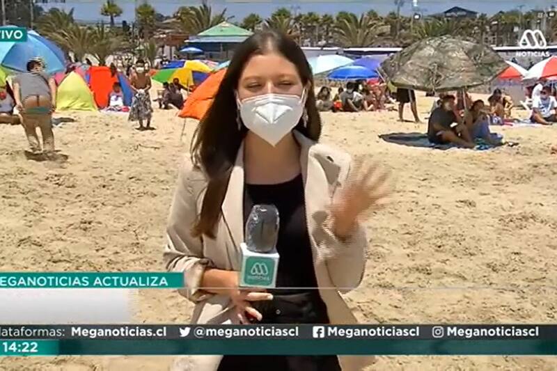 La periodista Bárbara Mena comenzaba a dar la información desde la misma arena de la playa para abordar cómo se enfrenta la pandemia en la zona.
