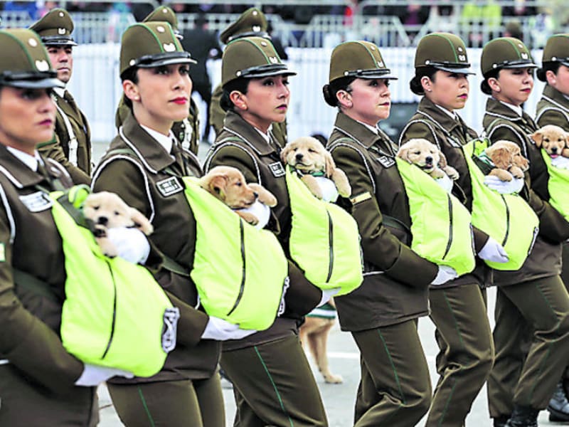 No fueron las únicas, ya que también desfilaron mujeres de la escuela de adiestramiento canino, ellas portaban los cachorros en sus brazos.