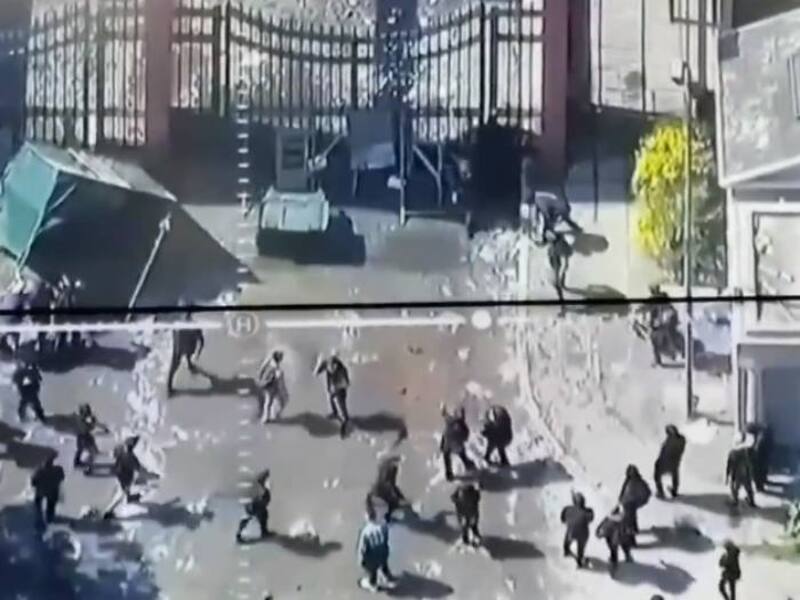 Según informó Carabineros, personal de Control de Orden Público debió ingresar al recinto ante "los graves incidentes protagonizados por manifestantes violentos en el ingreso".