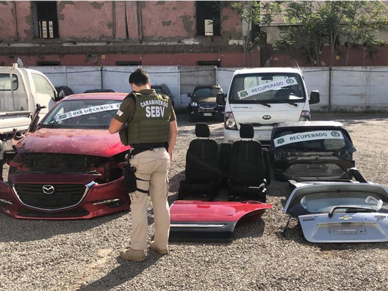 Carabineros encontró en el lugar diferentes modelos de vehículos, placas patentes y varios artículos que serían vendidos en el comercio informal.