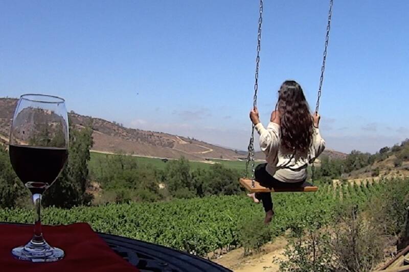 A metros de distancia, aparece una construcción que parece colgar del cerro. Se trata de CasaColumpio, un espacio funcional donde se puede aprovechar la amplia ducha, compartir en una barra que se integra a la cama, dando paso a una postal que es ideal para quienes buscan una experiencia lúdica, ya que las sonrisas son inevitables al balancearse en un columpio con una magnífica vista a la viña y que evoca los mejores recuerdos de la niñez.