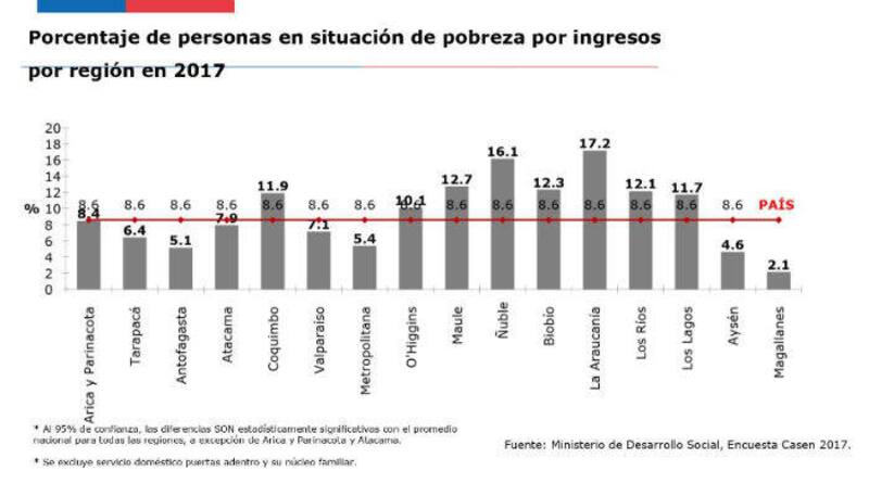 Casen 2017: revelan las regiones con mayor y menor tasa de pobreza