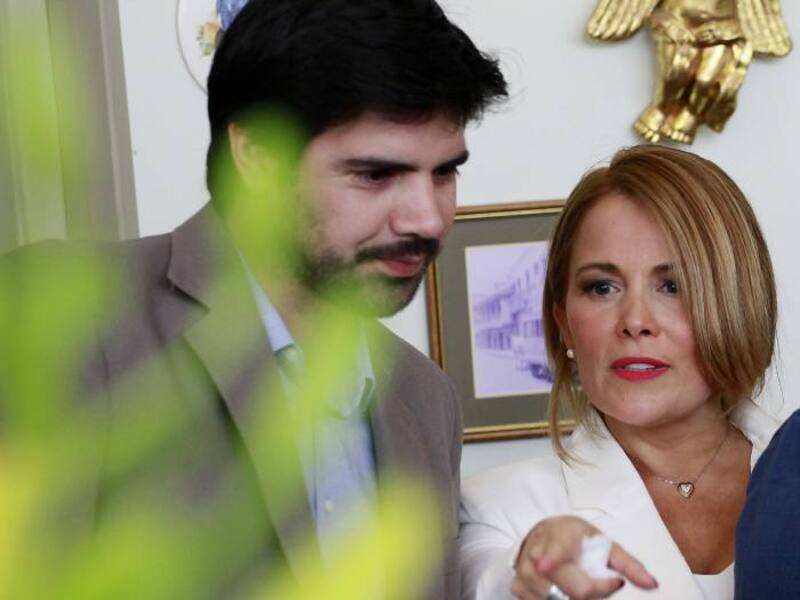 En la imagen -donde también aparece Joaquín Lavín León- la alcaldesa luce feliz.