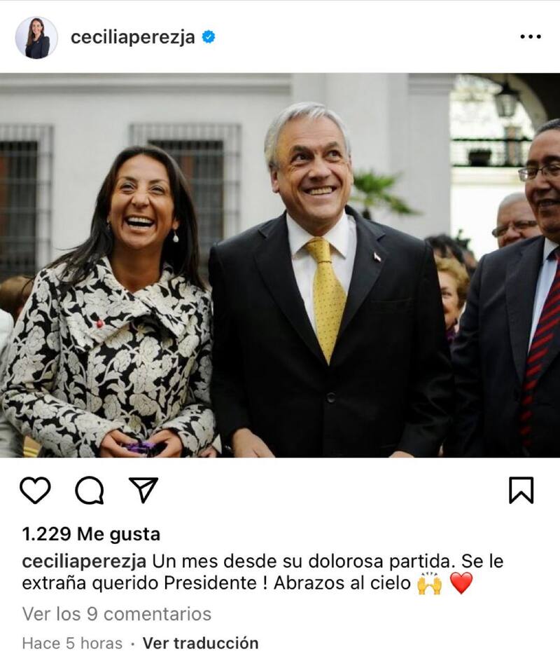 Por Rubith MoralesCecilia Pérez le dedicó emotivo mensaje a Sebastián Piñera: se cumplió un mes desde su muerte