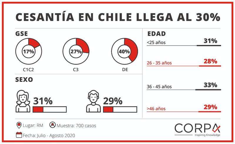 De acuerdo a información levantada por la empresa CORPA y correspondiente a los meses de julio-agosto, el desempleo llegó al 30% en la Región Metropolitana.