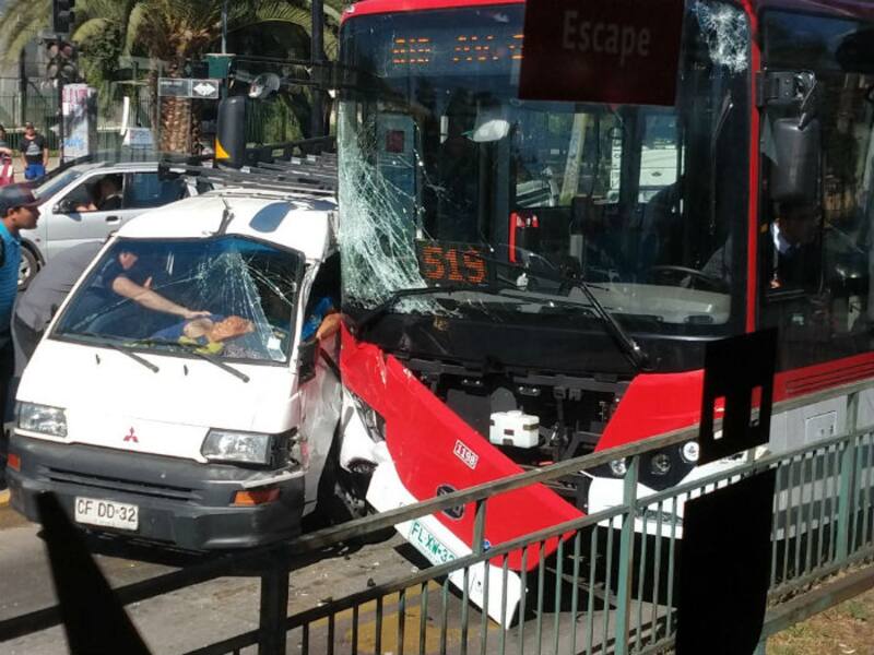 Se trata de un choque ocurrido en la intersección de Grecia con Ramón Cruz, en la comuna de Ñuñoa, mientras el bus circulaba por un corredor exclusivo.