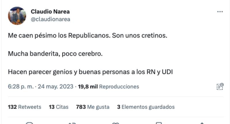 Con un breve y ácido mensaje, Claudio Narea desató la polémica en Twitter.