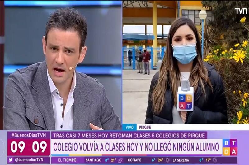 En él eran 15 los alumnos que podían llegar, aunque solo uno había confirmado su asistencia. Pese a la expectativa de periodistas y reporteros gráficos, sonó la campana a las 8:45 pero finalmente ese único alumno tampoco llegó. Así lo registró en vivo el matinal Buenos Días a Todos de TVN.