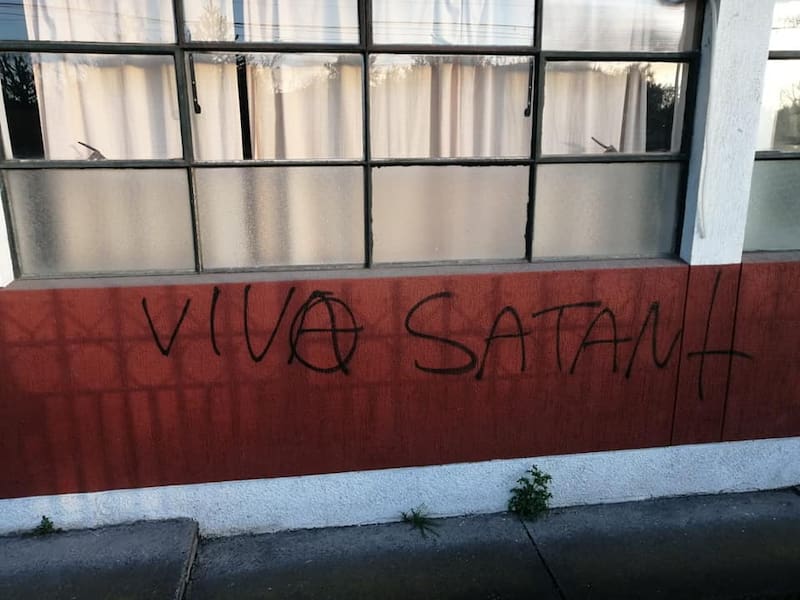 lo que más llamó la atención fueron los rayados, los cuales aludían a Marcianeke, Satanás y el Anarquismo.
