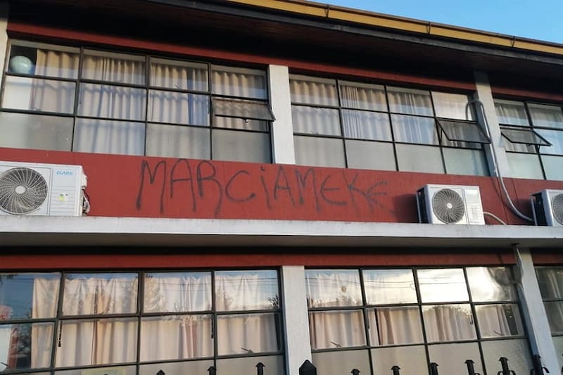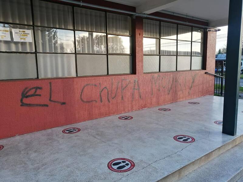 Según informó el medio Villarrica al día, el establecimiento sufrió rayados en sus paredes y algunos ventanales quebrados.