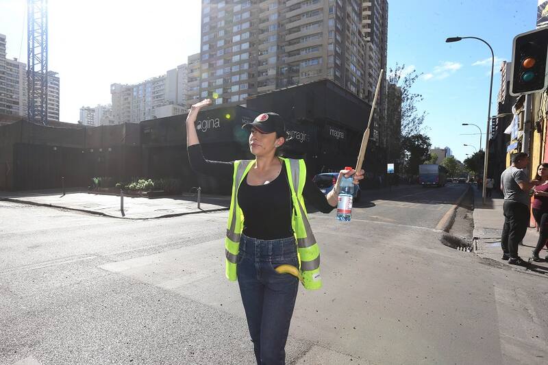 La mujer, oriunda de Bogotá, se instaló a todo sol durante la jornada de ayer a controlar el tránsito en la intersección de Santa Rosa con Eleuterio Ramírez, en el centro de Santiago, tras la imposibilidad de abrir su lavandería producto de los saqueos ocurridos.