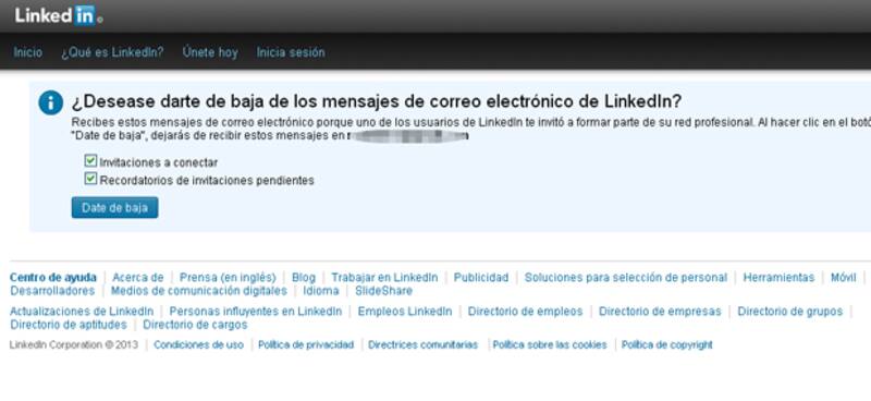 Entra al correo que llegó de LinkedIn y pincha en la parte donde dice "date de baja".