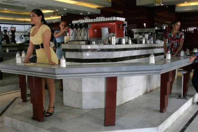 Saludos afectuosos, chistes y sonrisas son parte del menú. Sin embargo, hay varias categorías. Están las cafeterías más tradicionales, en las que pueden ingresar también mujeres y sus vitrinas son transparentes. Allí, las camareras visten minifaldas y camisas que son ajustadas pero no tan reveladoras.