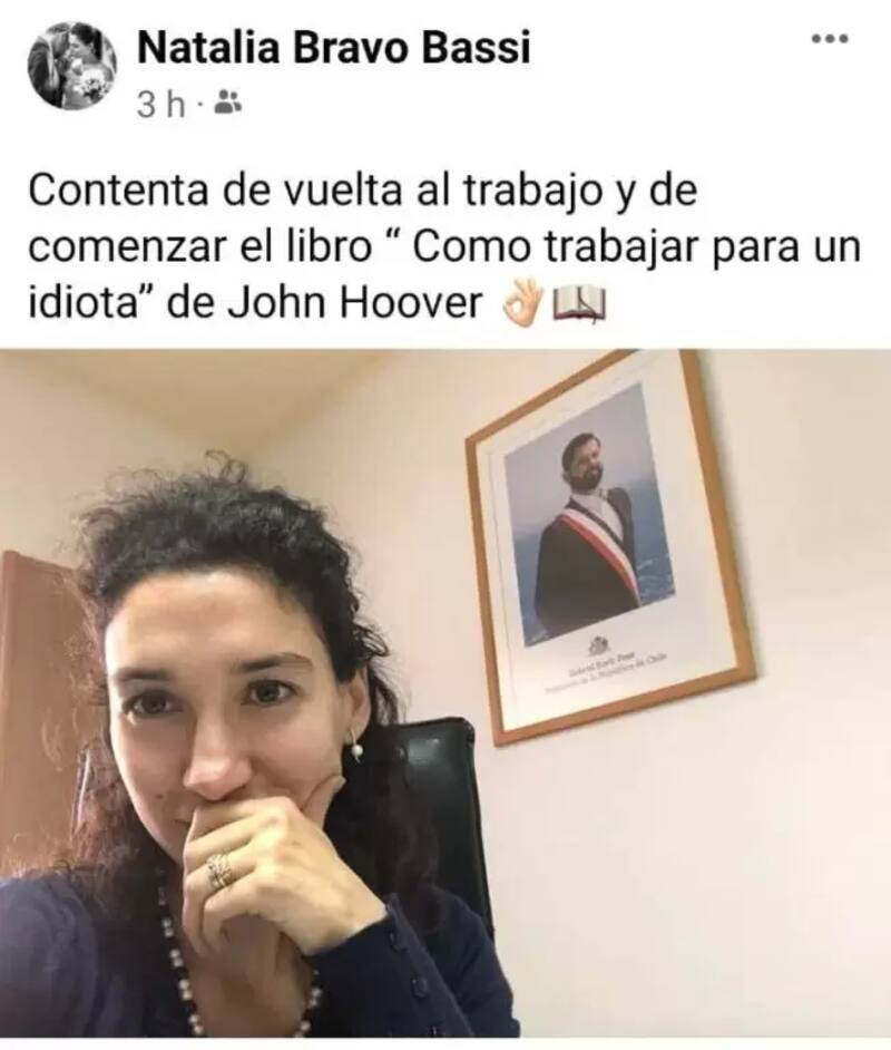 La funcionaria compartió un irónico comentario que iba en contra del presidente Gabriel Boric. Posteriormente fue eliminado de sus redes, según consignó Radio Biobio.