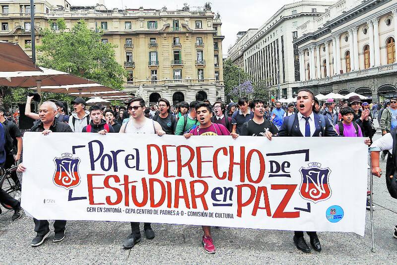 Apoderados y alumnos de ambos colegios se manifestaron a la salida de la Municipalidad de Santiago para reclamar por la decisión de terminar anticipadamente el año escolar. En algunas universidades se evalúa ampliar las clases al 2020.