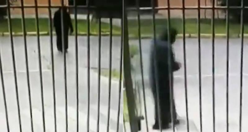 En el registro se ve a una mujer de avanzada edad caminando por la vía pública con hábito religioso.