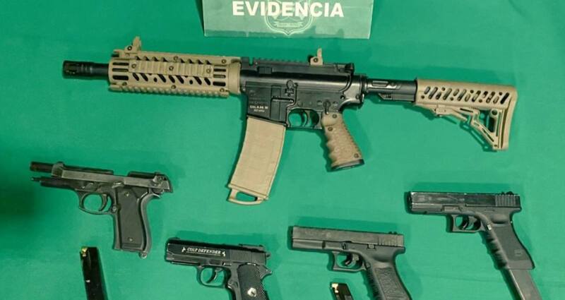 Tal como se puede ver en una foto publicada por la policía uniformada, los desconocidos contaban con cuatro pistolas y un fusil.