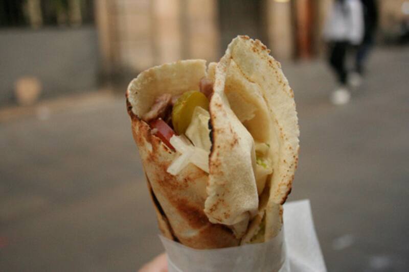 1- Shawarma: Se trata de una contundente comida rápida originaria del Medio Oriente. Es una delgada masa que envuelve una mezcla de verduras y carne de pollo, con otros condimentos extras para darle un sabor especial. Uno de los locales que ofrece este producto está ubicado en Ejército 187, cerquita de Sazié, y el menú cuesta unos 1.500 pesitos.