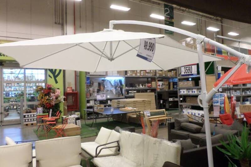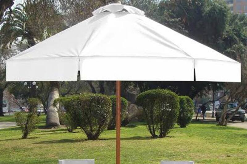 6. Quitasol lateral especial para tomarse un refresco a la orilla de la piscina o en una terraza chica que da para 4 sillas. Permite subirlo o bajarlo con su sistema plegable. Disponible en color blanco.