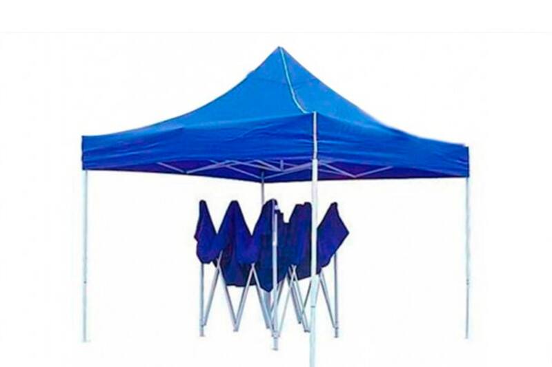2. Toldo plegable de 3 x 3 metros, de metal antioxidante con lona. De rápido montaje, la pliega y repliega en menos de 60 segundos. Lona impermeable. Mide 1.42 metro de largo.