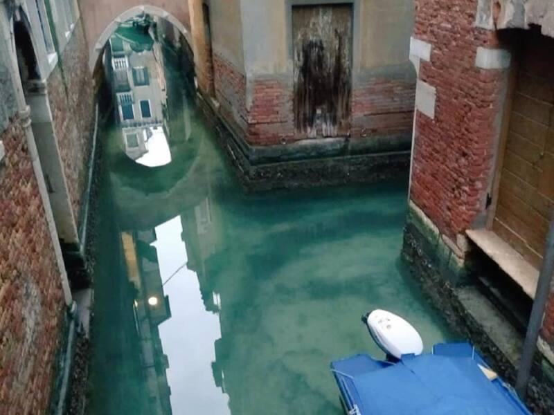 Debido al aislamiento impuesto en Italia, las aguas de los canales se han cristalizados, ya que no están pasando botes todo el día.