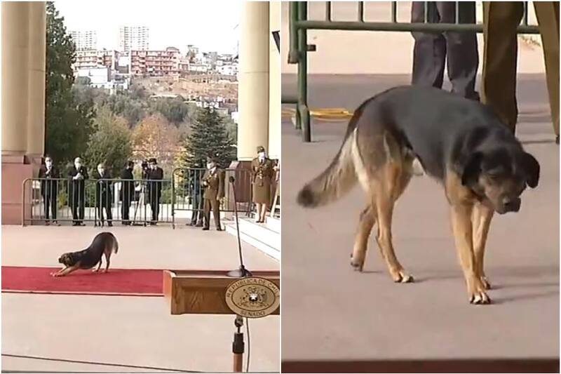 Pese a las restricciones, un infaltable perrito se coló al interior del Congreso y caminó por la alfombra roja. Tal como quedó registrado por las cámaras de T13, el can se estiró frente a la presencia policial.