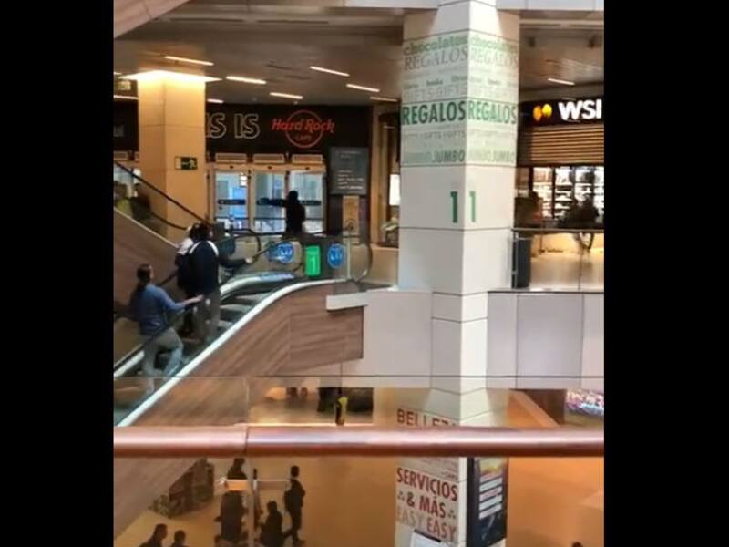 Al huir del lugar, los asaltantes amenazaron a uno de lo guardias que intentó detenerlos sin éxito. Tal como se aprecia en la grabación, el grupo escapó del centro comercial.