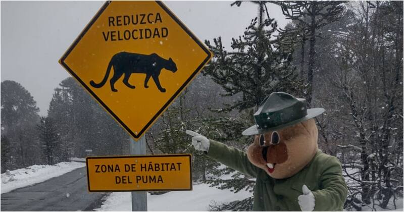 El letrero, ubicada junto a un camino en el sector de “El Colorado”, a pocos metros de una caseta de control del área protegida, solicitaba a los conductores que reduzcan la velocidad, al ser “zona del hábitat del puma”, además de otras especies propias de aquel ecosistema.