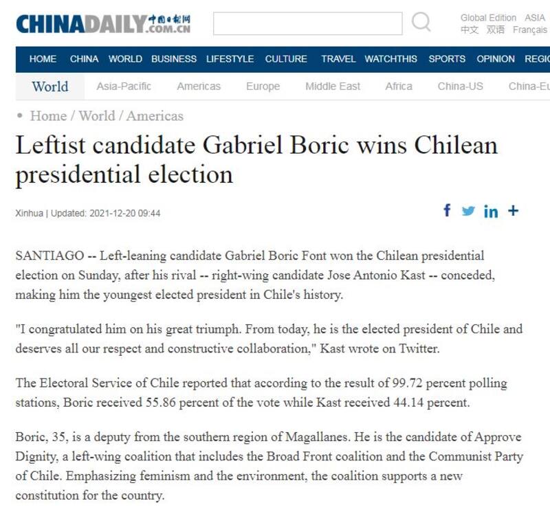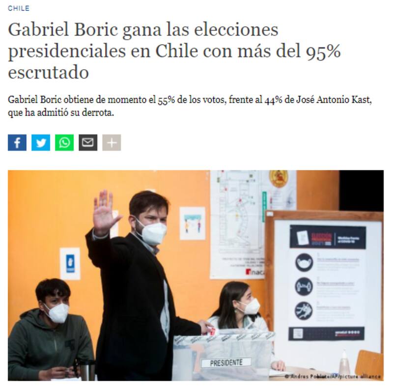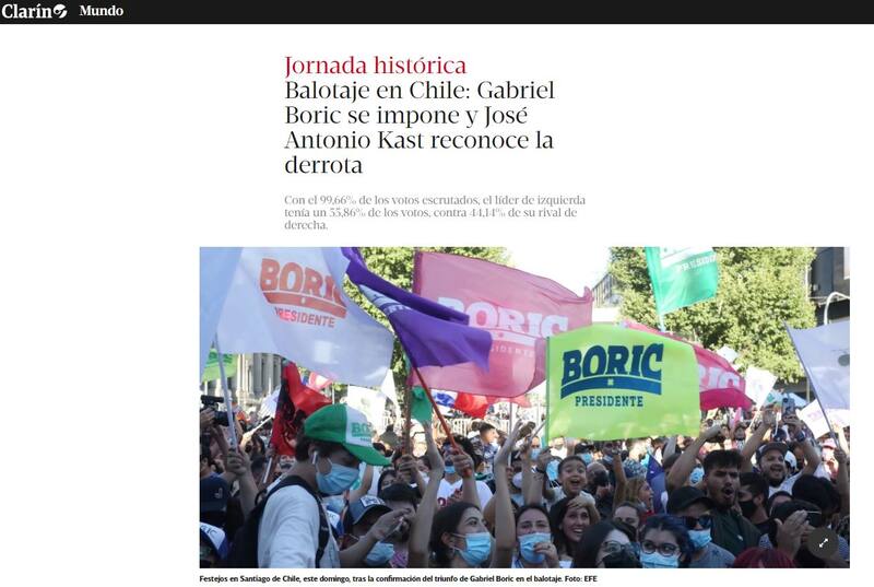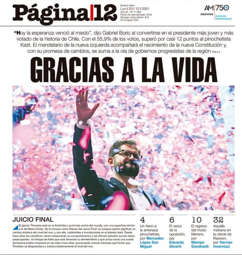 Por Guido Macari MarimónDesde “Un cambio de era” a “Gracias a la vida”: las portadas de la prensa internacional por triunfo de Boric
