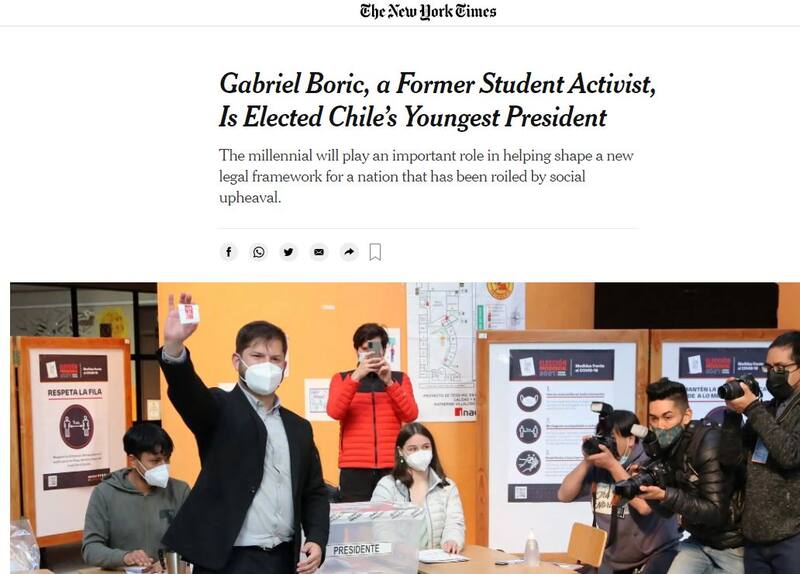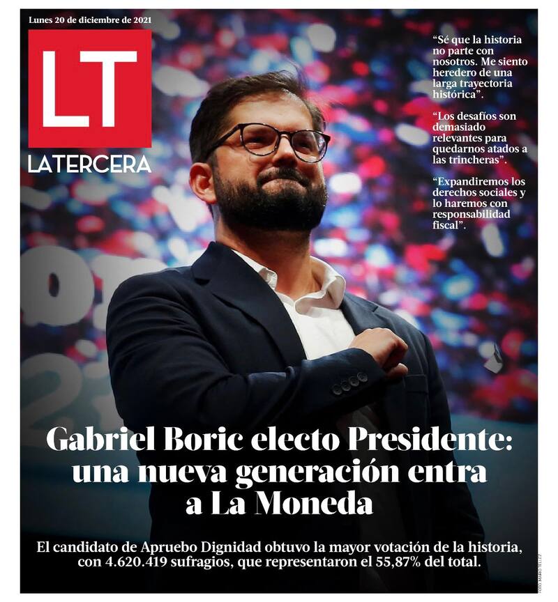 Mientras algunas portadas destacaron como “una cambio era en Chile” la elección de Boric, otras hicieron hincapié en que su figura surgiera de los movimientos estudiantiles del 2011, e incluso otras le pusieron énfasis a su juventud.