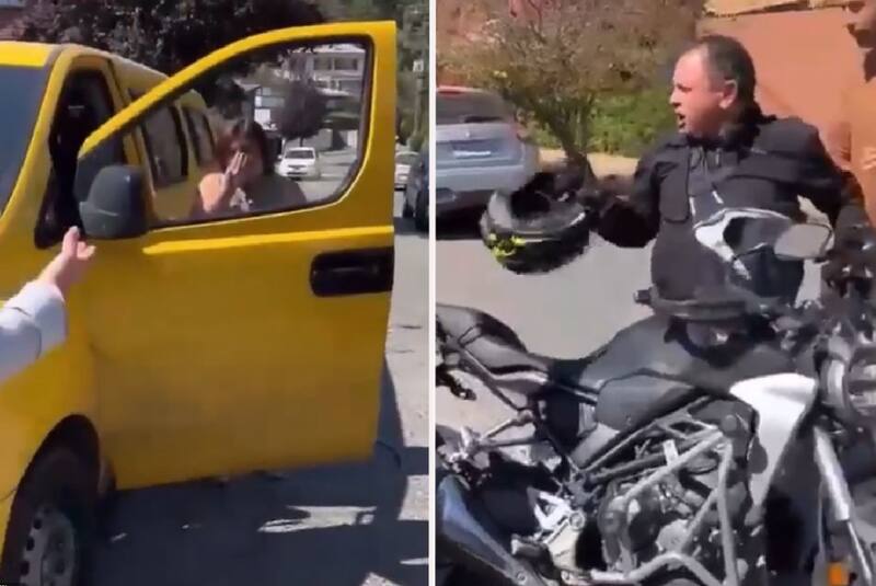 Con violencia reaccionó un motociclista que se molestó por la maniobra que realizó la conductora de un furgón escolar, en una calle de la ciudad de Concepción.