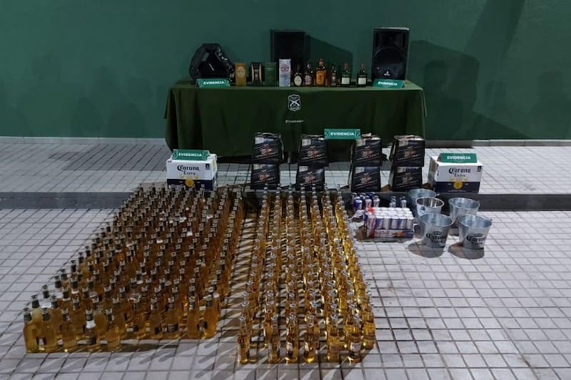 En el lugar, no solo se incautó luces y equipos de sonido, sino que también una gran cantidad de botellas de alcohol, pero no del desinfectante.