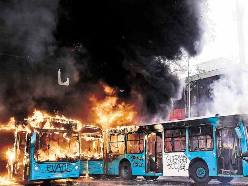 "ATENCIÓN. Temporalmente se suspenden todas las operaciones de superficie, por no contar con condiciones de seguridad para nuestros conductores y usuarios", señalaban en el Twitter del Transantiago, ya que hasta la tarde de ayer se contabilizaban más de 40 micros quemadas, lo que sumado a daños en el Metro totalizan más de 300 millones de dólares en pérdidas.