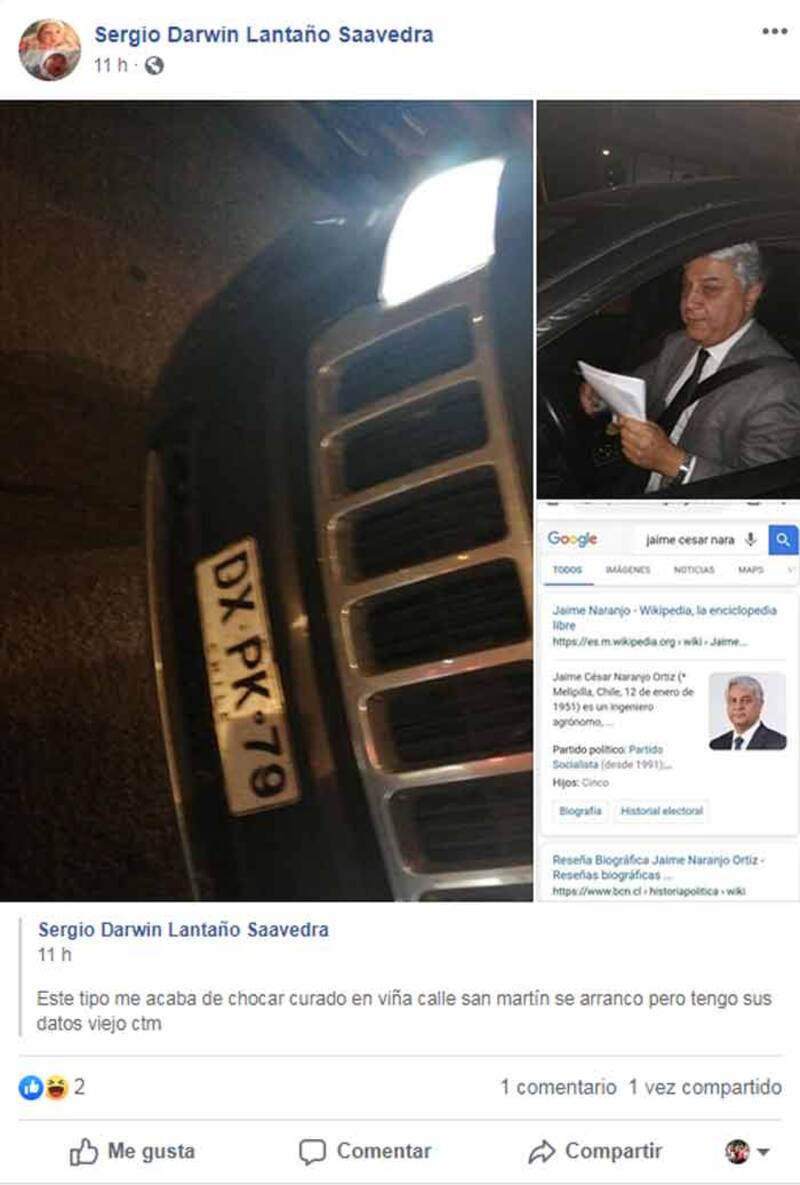 Una fuerte denuncia contra el diputado Jaime Naranjo (PS) realizó un viñamarino, quien acusó al legislador de chocarlo y atropellarle un pie cuando huyó del lugar.