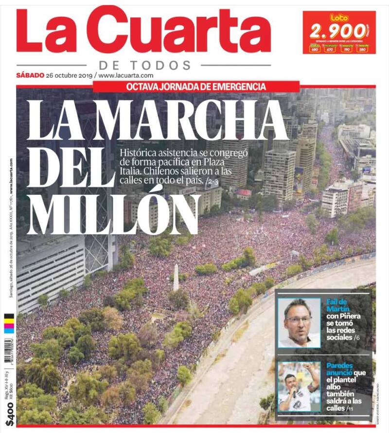 El 25 de octubre de de 2019, a una semana del inicio del estallido social, se registró un momento histórico en el marco de las manifestaciones de la denominada "primavera chilena".