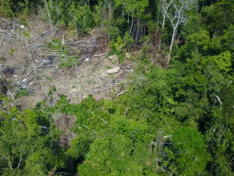 Nuevas imágenes aéreas ofrecieron una rara visión de una tribu aislada en la Amazonia brasileña: muestran a 16 personas caminando a través de la selva además de una zona deforestada donde hay una cosecha.