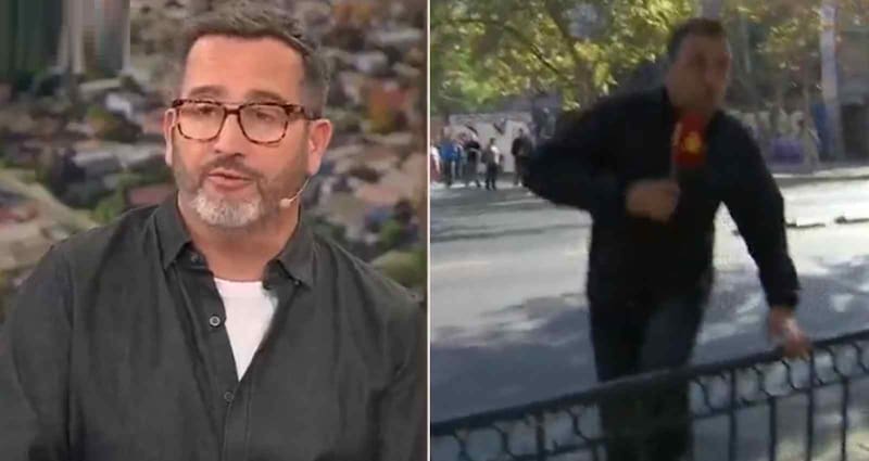 “Esta manifestación no da tregua y cada vez se pone más compleja...”, alcanzó a relatar el comunicador, cuando sintió un fuerte golpe por la espalda. Se habría tratado de un piedrazo.