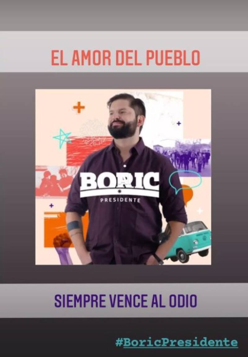 Este domingo, una vez confirmado el triunfo de Gabriel Boric, Karina Oliva publicó una imagen para destacar el resultado del balotaje. “El amor del pueblo siempre vence al odio”, reza la postal.
