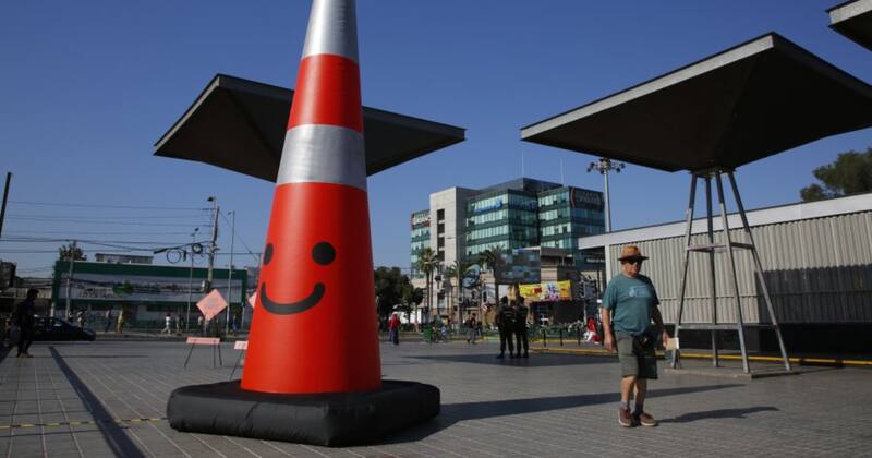 Durante la jornada de hoy, los vecinos de Maipú pudieron ver a un particular invitado en plena plaza. Se trata de un gigantesco cono vial, el cual le sonríe a todas las personas que pasan por el sector.