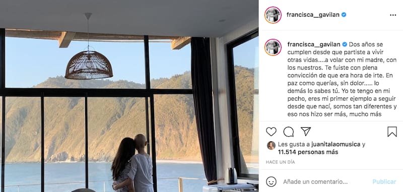 En la publicación, Gavilán escribió: "Dos años se cumplen desde que partiste a vivir otras vidas…. a volar con mi madre, con los nuestros. Te fuiste con plena convicción de que era hora de irte. En paz como querías, sin dolor. Lo demás lo sabes tú".